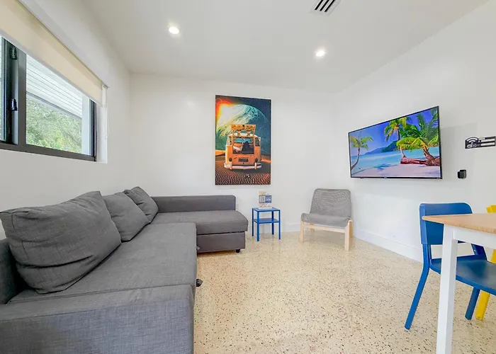 Featuring a private swimming pool, the 1-room Designer 1Br Retreat Heart Of Miami Pool Apartment is nearly a 5-minute walk from PanAmerican Art Projects. Guests can make use of Wi-Fi for both business and leisure purposes.